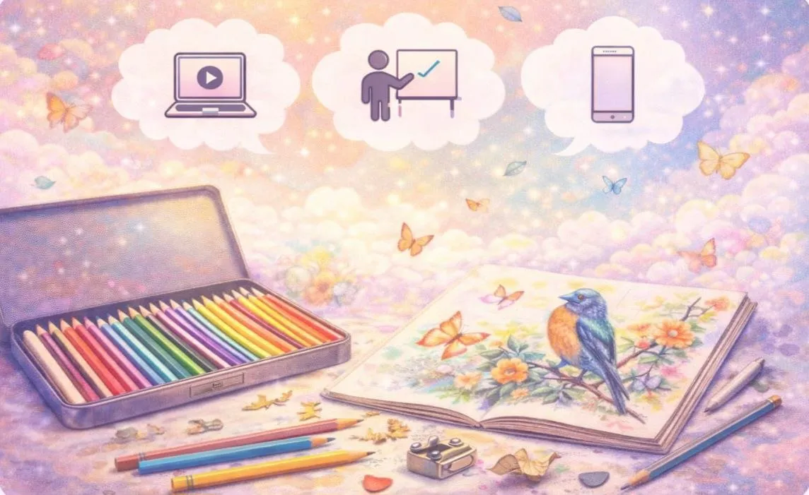 در یک آموزشگاه مداد رنگی حرفهای، هنرجو یاد میگیرد چگونه: